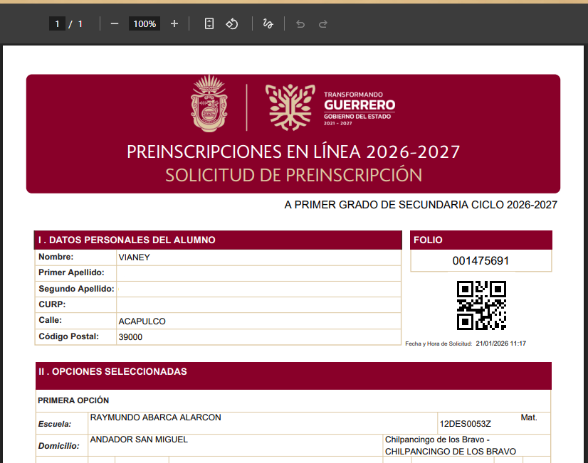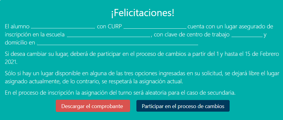 Una vez concluido el proceso, se puede realizar la reimpresión del comprobante ingresando al sitio con la CURP del alumno.