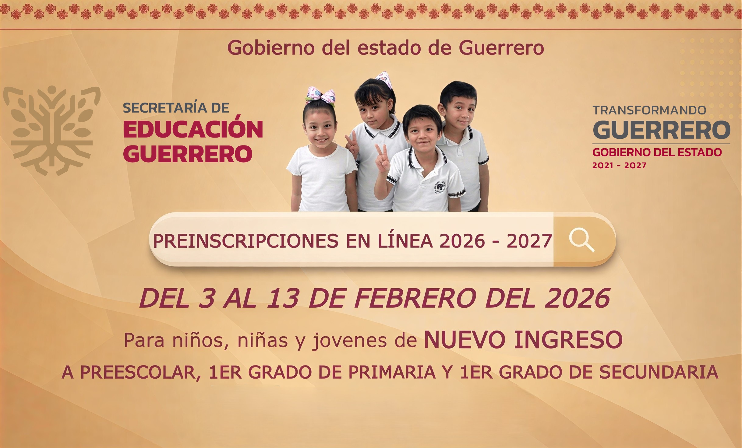 El proceso de preinscripción será en línea a través de este portal y presencial en las escuelas rurales o que no cuenten con servicio de internet.